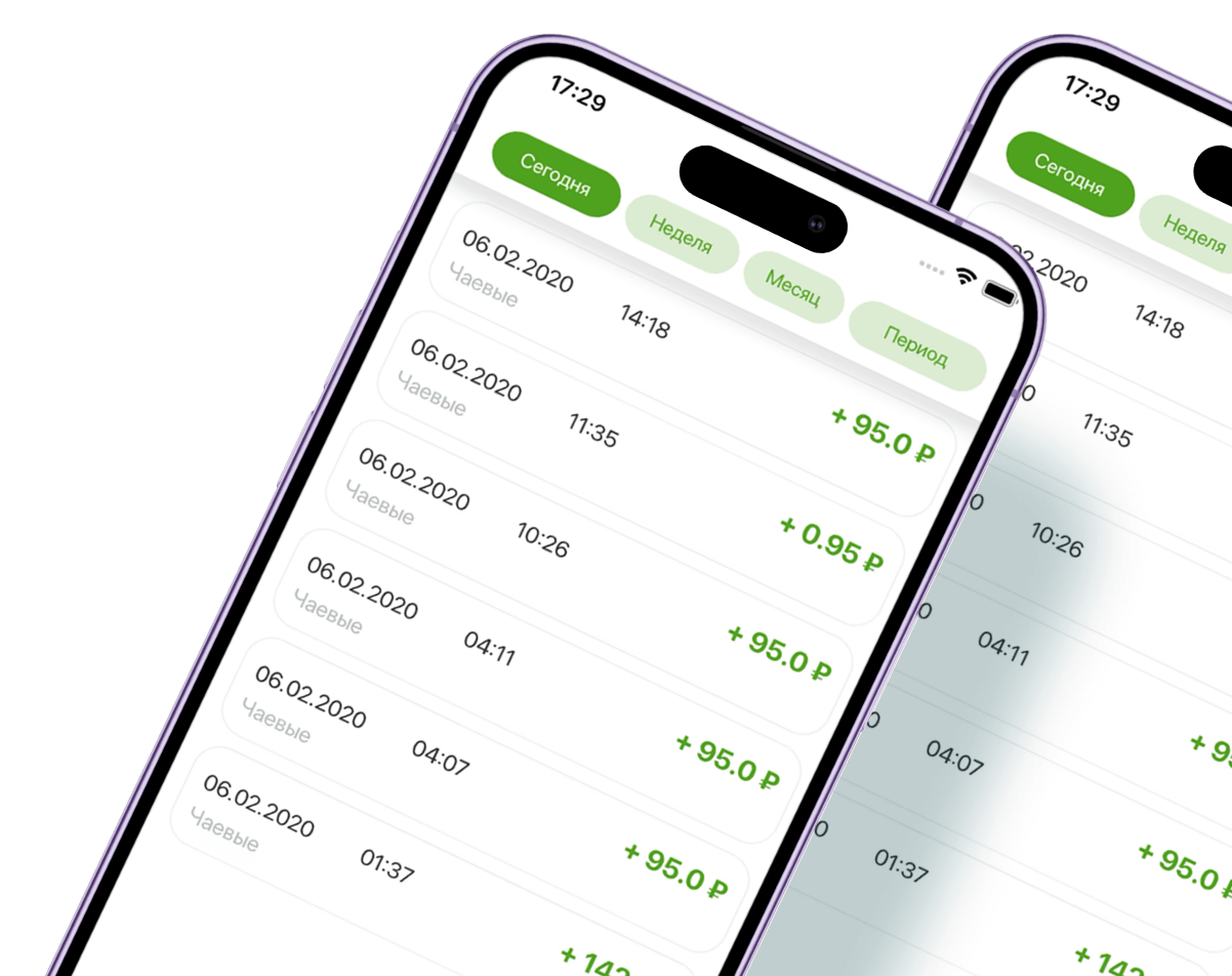 Принимайте чаевые от гостей за считанные секунды без установки приложений и сложной регистрации. Клиенту достаточно будет отсканировать ваш индивидуальный QR-код и ввести сумму. Деньги переводятся мгновенно